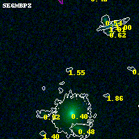 Object #775   x,y = (1936, 3839)   RA, Dec = (00:32:13.632, 18:09:12.96) = (8.05680, 18.15360)   BPZ = 1.552 [0.230--2.891]   type = 9.70 (SB3_B10 - SB2_B10)   chisq2 = 0.05   ODDS = 0.11   z_cluster = 0.396