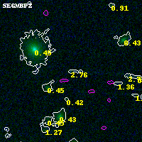 Object #824   x,y = (2372, 3800)   RA, Dec = (00:32:11.808, 18:09:10.80) = (8.04920, 18.15300)   BPZ = 2.759 [0.071--3.076]   type = 11.00 (SB11_A_0_l)   chisq2 = 0.46   ODDS = 0.26   z_cluster = 0.396