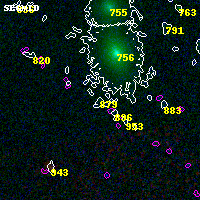 Object #879   x,y = (3262, 3752)   RA, Dec = (00:32:08.040, 18:09:07.92) = (8.03350, 18.15220)   BPZ = 0.921 [0.514--10.315]   type = 10.80 (SB11_A_0_l - SB3_B10)   chisq2 = 7.94   ODDS = 0.23   z_cluster = 0.396
