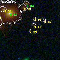 Object #1   x,y = (1860, 1072)   RA, Dec = (00:32:13.944, 18:06:27.00) = (8.05810, 18.10750)   BPZ = 0.843 [0.205--2.996]   type = 10.40 (SB3_B10 - SB11_A_0_l)   stellarity = 0.05   chisq2 = 0.86   ODDS = 0.12   z_cluster = 0.396