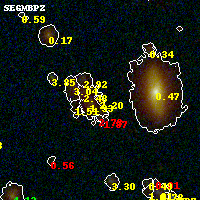 Object #1000   x,y = (2135, 1657)   RA, Dec = (00:32:12.792, 18:07:02.28) = (8.05330, 18.11730)   BPZ = 2.199 [0.812--2.844]   type = 7.50 (SB1_B10 - Scd_B10)   stellarity = 0.00   chisq2 = 0.36   ODDS = 0.18   z_cluster = 0.396