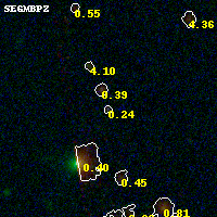 Black segments are analyzed here. Roll mouse over color images to view segments. Best viewed in a wide browser window (1200 pixels or more). Download SED & P(z) plots to view larger versions.