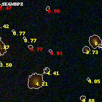 Object #103   x,y = (2611, 3394)   RA, Dec = (00:32:10.800, 18:08:46.32) = (8.04500, 18.14620)   BPZ = 0.906 [0.379--4.789]   type = 10.00 (SB3_B10)   stellarity = 0.01   chisq2 = 2.00   ODDS = 0.23   z_cluster = 0.396