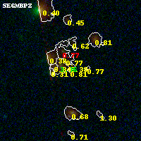Black segments are analyzed here. Roll mouse over color images to view segments. Best viewed in a wide browser window (1200 pixels or more). Download SED & P(z) plots to view larger versions.