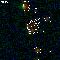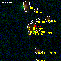 Black segments are analyzed here. Roll mouse over color images to view segments. Best viewed in a wide browser window (1200 pixels or more). Download SED & P(z) plots to view larger versions.