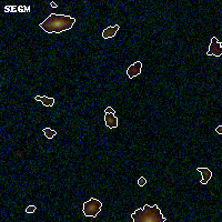Black segments are analyzed here. Roll mouse over color images to view segments. Best viewed in a wide browser window (1200 pixels or more). Download SED & P(z) plots to view larger versions.