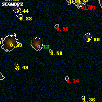 Object #1085   x,y = (2074, 1549)   RA, Dec = (00:32:13.056, 18:06:55.80) = (8.05440, 18.11550)   BPZ = 3.575 [0.255--3.950]   type = 11.00 (SB11_A_0_l)   stellarity = 0.52   chisq2 = 0.11   ODDS = 0.61   z_cluster = 0.396