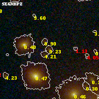 Object #113   x,y = (2244, 3374)   RA, Dec = (00:32:12.336, 18:08:45.24) = (8.05140, 18.14590)   BPZ = 0.230 [0.154--4.354]   type = 3.80 (Ell4_A_0 - Ell5_A_0)   stellarity = 0.01   chisq2 = 0.27   ODDS = 0.27   z_cluster = 0.396