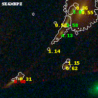 Black segments are analyzed here. Roll mouse over color images to view segments. Best viewed in a wide browser window (1200 pixels or more). Download SED & P(z) plots to view larger versions.