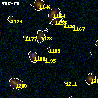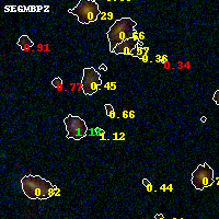 Black segments are analyzed here. Roll mouse over color images to view segments. Best viewed in a wide browser window (1200 pixels or more). Download SED & P(z) plots to view larger versions.