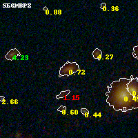 Object #1201   x,y = (2673, 1271)   RA, Dec = (00:32:10.536, 18:06:38.88) = (8.04390, 18.11080)   BPZ = 0.717 [0.543--0.888]   type = 6.10 (Sbc_B10 - Scd_B10)   stellarity = 0.03   chisq2 = 0.03   ODDS = 0.52   z_cluster = 0.396