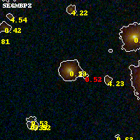 Object #134   x,y = (2101, 3335)   RA, Dec = (00:32:12.936, 18:08:42.72) = (8.05390, 18.14520)   BPZ = 0.328 [0.252--0.366]   type = 3.70 (Ell4_A_0 - Ell5_A_0)   stellarity = 0.03   chisq2 = 0.03   ODDS = 0.91   z_cluster = 0.396
