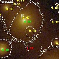 Object #155   x,y = (2371, 3209)   RA, Dec = (00:32:11.808, 18:08:35.16) = (8.04920, 18.14310)   BPZ = 0.425 [0.336--0.472]   type = 4.20 (Ell4_A_0 - ES0_B10)   stellarity = 0.03   chisq2 = 0.07   ODDS = 0.86   z_cluster = 0.396