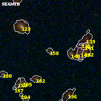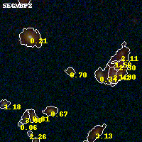 Black segments are analyzed here. Roll mouse over color images to view segments. Best viewed in a wide browser window (1200 pixels or more). Download SED & P(z) plots to view larger versions.