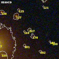 Black segments are analyzed here. Roll mouse over color images to view segments. Best viewed in a wide browser window (1200 pixels or more). Download SED & P(z) plots to view larger versions.