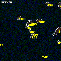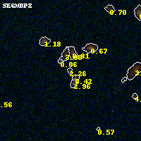 Black segments are analyzed here. Roll mouse over color images to view segments. Best viewed in a wide browser window (1200 pixels or more). Download SED & P(z) plots to view larger versions.