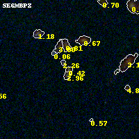 Black segments are analyzed here. Roll mouse over color images to view segments. Best viewed in a wide browser window (1200 pixels or more). Download SED & P(z) plots to view larger versions.