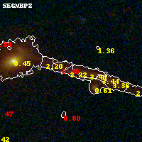 Black segments are analyzed here. Roll mouse over color images to view segments. Best viewed in a wide browser window (1200 pixels or more). Download SED & P(z) plots to view larger versions.