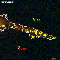 Black segments are analyzed here. Roll mouse over color images to view segments. Best viewed in a wide browser window (1200 pixels or more). Download SED & P(z) plots to view larger versions.