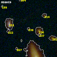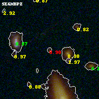 Black segments are analyzed here. Roll mouse over color images to view segments. Best viewed in a wide browser window (1200 pixels or more). Download SED & P(z) plots to view larger versions.