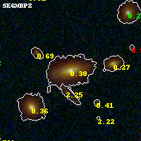 Black segments are analyzed here. Roll mouse over color images to view segments. Best viewed in a wide browser window (1200 pixels or more). Download SED & P(z) plots to view larger versions.