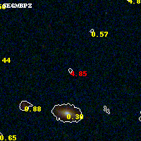 Object #265   x,y = (1582, 3080)   RA, Dec = (00:32:15.120, 18:08:27.60) = (8.06300, 18.14100)   BPZ = 4.853 [4.535--5.348]   type = 11.00 (SB11_A_0_l)   stellarity = 0.00   chisq2 = 1.16   ODDS = 0.74   z_cluster = 0.396
