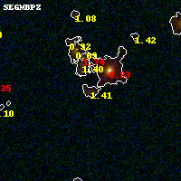 Black segments are analyzed here. Roll mouse over color images to view segments. Best viewed in a wide browser window (1200 pixels or more). Download SED & P(z) plots to view larger versions.