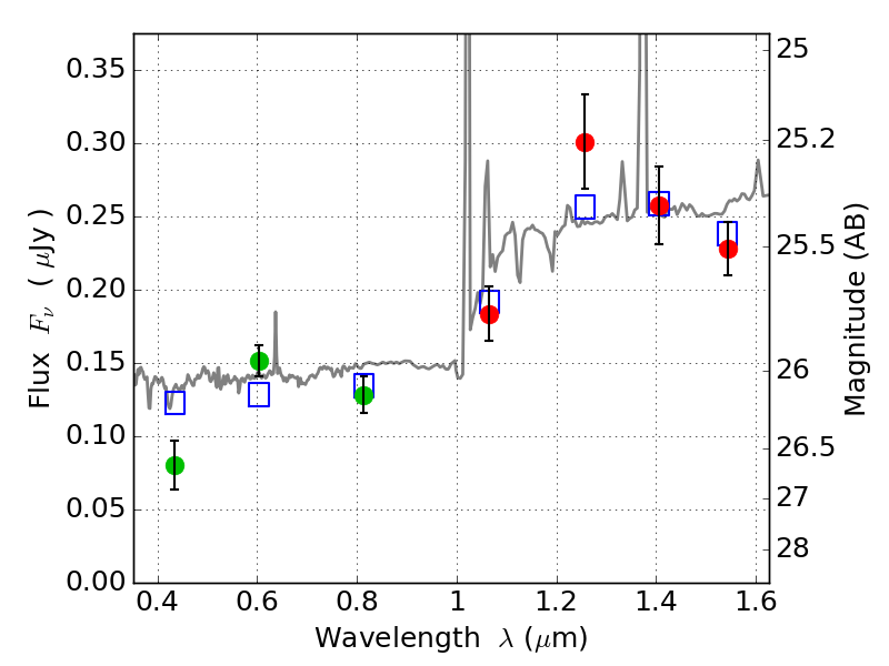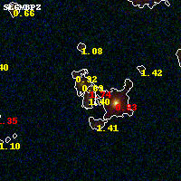 Object #277   x,y = (3087, 3040)   RA, Dec = (00:32:08.784, 18:08:25.08) = (8.03660, 18.14030)   BPZ = 1.741 [1.521--1.790]   type = 9.60 (SB3_B10 - SB2_B10)   stellarity = 0.00   chisq2 = 1.56   ODDS = 0.78   z_cluster = 0.396