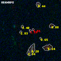 Object #305   x,y = (1447, 3014)   RA, Dec = (00:32:15.696, 18:08:23.64) = (8.06540, 18.13990)   BPZ = 1.185 [0.541--7.388]   type = 6.00 (Sbc_B10)   stellarity = 0.00   chisq2 = 1.48   ODDS = 0.15   z_cluster = 0.396