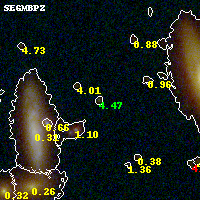 Black segments are analyzed here. Roll mouse over color images to view segments. Best viewed in a wide browser window (1200 pixels or more). Download SED & P(z) plots to view larger versions.