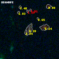 Black segments are analyzed here. Roll mouse over color images to view segments. Best viewed in a wide browser window (1200 pixels or more). Download SED & P(z) plots to view larger versions.