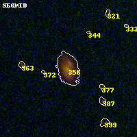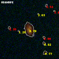 Black segments are analyzed here. Roll mouse over color images to view segments. Best viewed in a wide browser window (1200 pixels or more). Download SED & P(z) plots to view larger versions.