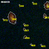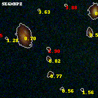 Black segments are analyzed here. Roll mouse over color images to view segments. Best viewed in a wide browser window (1200 pixels or more). Download SED & P(z) plots to view larger versions.