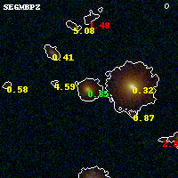 Black segments are analyzed here. Roll mouse over color images to view segments. Best viewed in a wide browser window (1200 pixels or more). Download SED & P(z) plots to view larger versions.