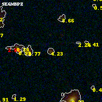 Object #464   x,y = (2212, 2711)   RA, Dec = (00:32:12.480, 18:08:05.28) = (8.05200, 18.13480)   BPZ = 4.232 [0.412--4.415]   type = 8.20 (SB1_B10 - SB2_B10)   stellarity = 0.01   chisq2 = 0.58   ODDS = 0.76   z_cluster = 0.396