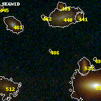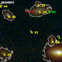 Object #486   x,y = (2949, 2651)   RA, Dec = (00:32:09.360, 18:08:01.68) = (8.03900, 18.13380)   BPZ = 0.812 [0.245--3.782]   type = 10.20 (SB3_B10 - SB11_A_0_l)   stellarity = 0.70   chisq2 = 0.72   ODDS = 0.13   z_cluster = 0.396