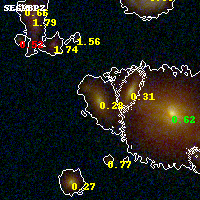 Black segments are analyzed here. Roll mouse over color images to view segments. Best viewed in a wide browser window (1200 pixels or more). Download SED & P(z) plots to view larger versions.
