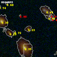 Black segments are analyzed here. Roll mouse over color images to view segments. Best viewed in a wide browser window (1200 pixels or more). Download SED & P(z) plots to view larger versions.