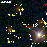 Black segments are analyzed here. Roll mouse over color images to view segments. Best viewed in a wide browser window (1200 pixels or more). Download SED & P(z) plots to view larger versions.