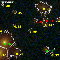 Black segments are analyzed here. Roll mouse over color images to view segments. Best viewed in a wide browser window (1200 pixels or more). Download SED & P(z) plots to view larger versions.