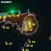 Black segments are analyzed here. Roll mouse over color images to view segments. Best viewed in a wide browser window (1200 pixels or more). Download SED & P(z) plots to view larger versions.