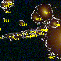 Black segments are analyzed here. Roll mouse over color images to view segments. Best viewed in a wide browser window (1200 pixels or more). Download SED & P(z) plots to view larger versions.
