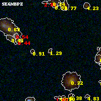 Black segments are analyzed here. Roll mouse over color images to view segments. Best viewed in a wide browser window (1200 pixels or more). Download SED & P(z) plots to view larger versions.