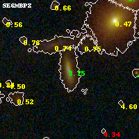 Black segments are analyzed here. Roll mouse over color images to view segments. Best viewed in a wide browser window (1200 pixels or more). Download SED & P(z) plots to view larger versions.