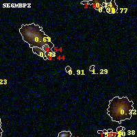 Black segments are analyzed here. Roll mouse over color images to view segments. Best viewed in a wide browser window (1200 pixels or more). Download SED & P(z) plots to view larger versions.