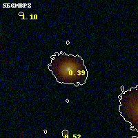 Object #633   x,y = (1608, 2373)   RA, Dec = (00:32:15.024, 18:07:45.12) = (8.06260, 18.12920)   BPZ = 0.390 [0.300--0.427]   type = 3.70 (Ell4_A_0 - Ell5_A_0)   stellarity = 0.03   chisq2 = 0.03   ODDS = 0.87   z_cluster = 0.396
