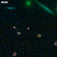 Black segments are analyzed here. Roll mouse over color images to view segments. Best viewed in a wide browser window (1200 pixels or more). Download SED & P(z) plots to view larger versions.