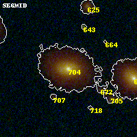 Object #704   x,y = (1725, 2313)   RA, Dec = (00:32:14.520, 18:07:41.52) = (8.06050, 18.12820)   BPZ = 0.419 [0.326--0.468]   type = 3.00 (Ell5_A_0)   stellarity = 0.03   chisq2 = 0.03   ODDS = 0.88   z_cluster = 0.396