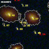 Black segments are analyzed here. Roll mouse over color images to view segments. Best viewed in a wide browser window (1200 pixels or more). Download SED & P(z) plots to view larger versions.
