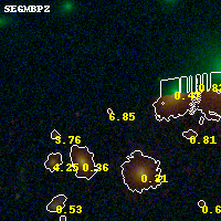 Black segments are analyzed here. Roll mouse over color images to view segments. Best viewed in a wide browser window (1200 pixels or more). Download SED & P(z) plots to view larger versions.